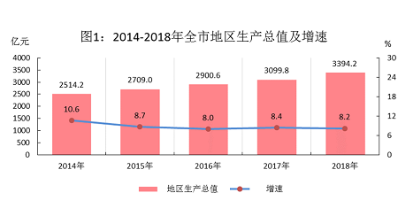 2018年,面对复杂严峻的经济形势,市委、市政府带领全市人民认真贯彻落实中央和省委、省政府各项决策部署,大力实施开放强市、产业立市战略,切实做好稳就业、稳金融、稳外贸、稳外资、稳投资、稳预期工作,经济运行总体平稳、稳中有进,保持了持续健康发展。