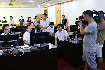 随后,汲凤翔赶往第三次全国经济普查国家级综合试点办公室的数据中心,查看经济普查数据入户登记数据信息上报情况。他详细了解了数据上报的运作流程、检查了刚入户登记的两家经济普查单位的数据上传情况。当得知两家经济普查单位真实模拟的经济普查登记全过程得以顺利进行,汲凤翔对湖南经济普查国家级综合试点相关工作给予了肯定。