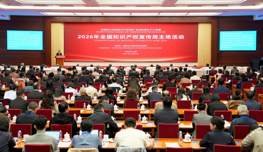 4月20日,由全国知识产权宣传周活动组委会主办的2026年全国知识产权宣传周主场活动在北京举行。宣传周活动组委会主任单位负责同志、国家知识产权局局长申长雨,中央宣传部副秘书长陈文俊,国家市场监督管理总局副局长束为出席活动并致辞。世界知识产权组织(WIPO)总干事邓鸿森作视频致辞。最高人民法院副院长陶凯元、最高人民检察院副检察长史卫忠、教育部副部长徐青森、文化和旅游部副部长卢映川、国家林草局副局长李云卿,北京市人民政府副市长唐文弘出席主场活动。国家知识产权局副局长芮文彪主持活动并介绍宣传周期间组委会各成员单位主要活动安排。