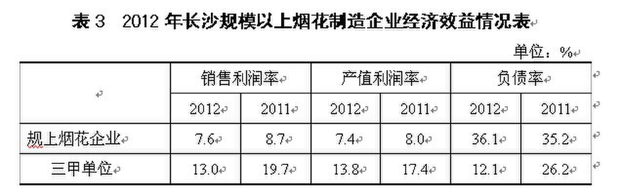 从2012年长沙规模以上烟花制造企业发展情况看,整体规模虽进一步扩大,但盈利能力却有所下降。2012年全市规模以上烟花制造企业销售利润率为7.6%,低于上年1.1个百分点;产值利润率为7.4%,低于上年0.6个百分点;负债率为36.1%,高于上年0.9个百分点。从2012年规模以上烟花制造企业营业收入前三甲(金生、复兴和恒信)情况看,3家单位销售利润率为13.0%,虽高于平均水平5.4个百分点,但与上年相比下降6.7个百分点,产值利润率为13.8%,与上年相比下降3.6个百分点。