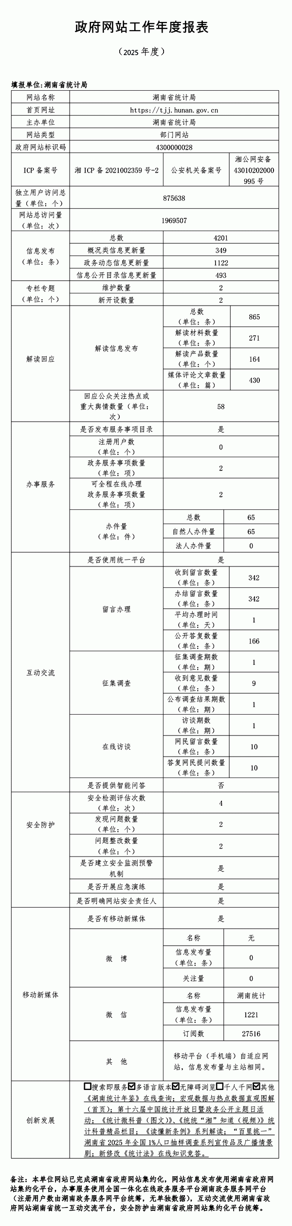 湖南省统计局政府网站工作年度报表(2025年度).pdf