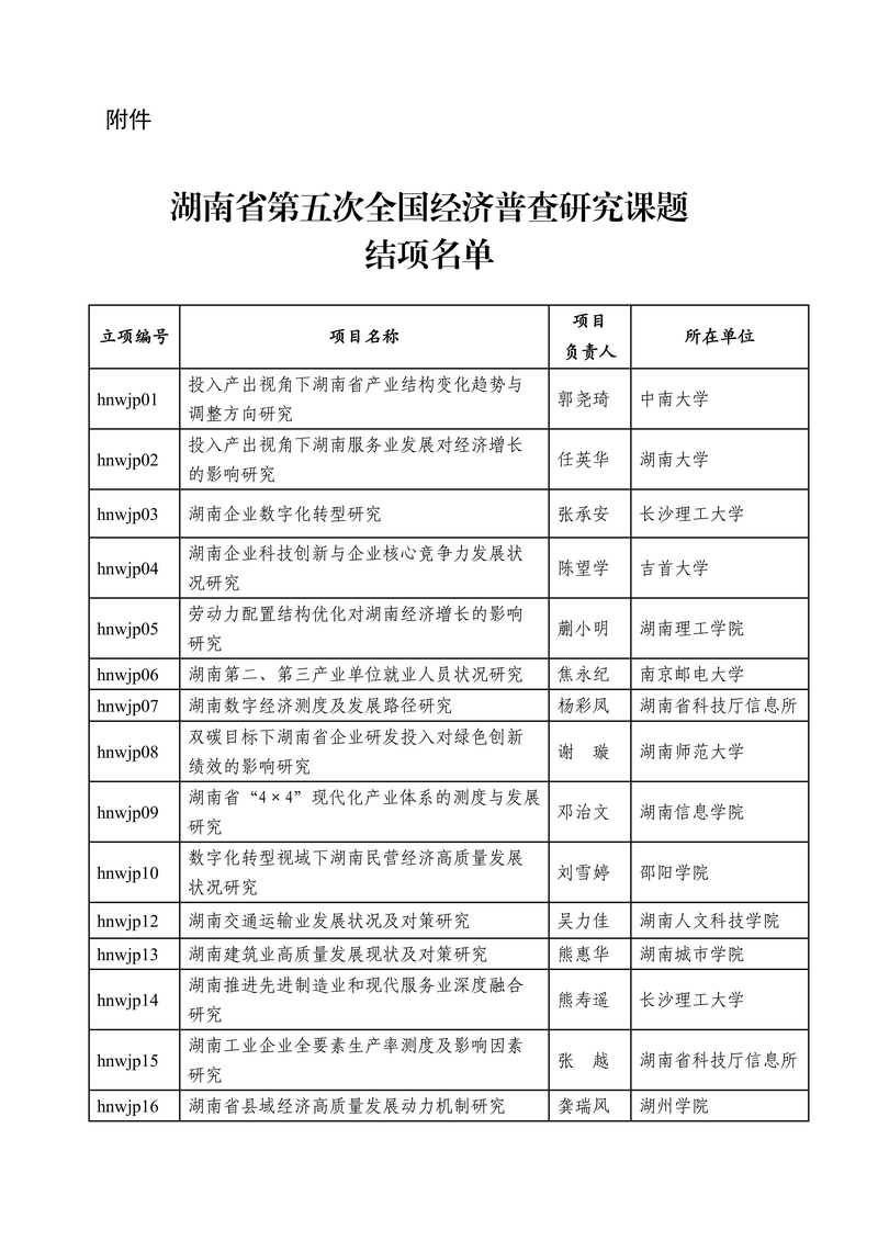 附件:湖南省第五次全国经济普查研究课题结项名单